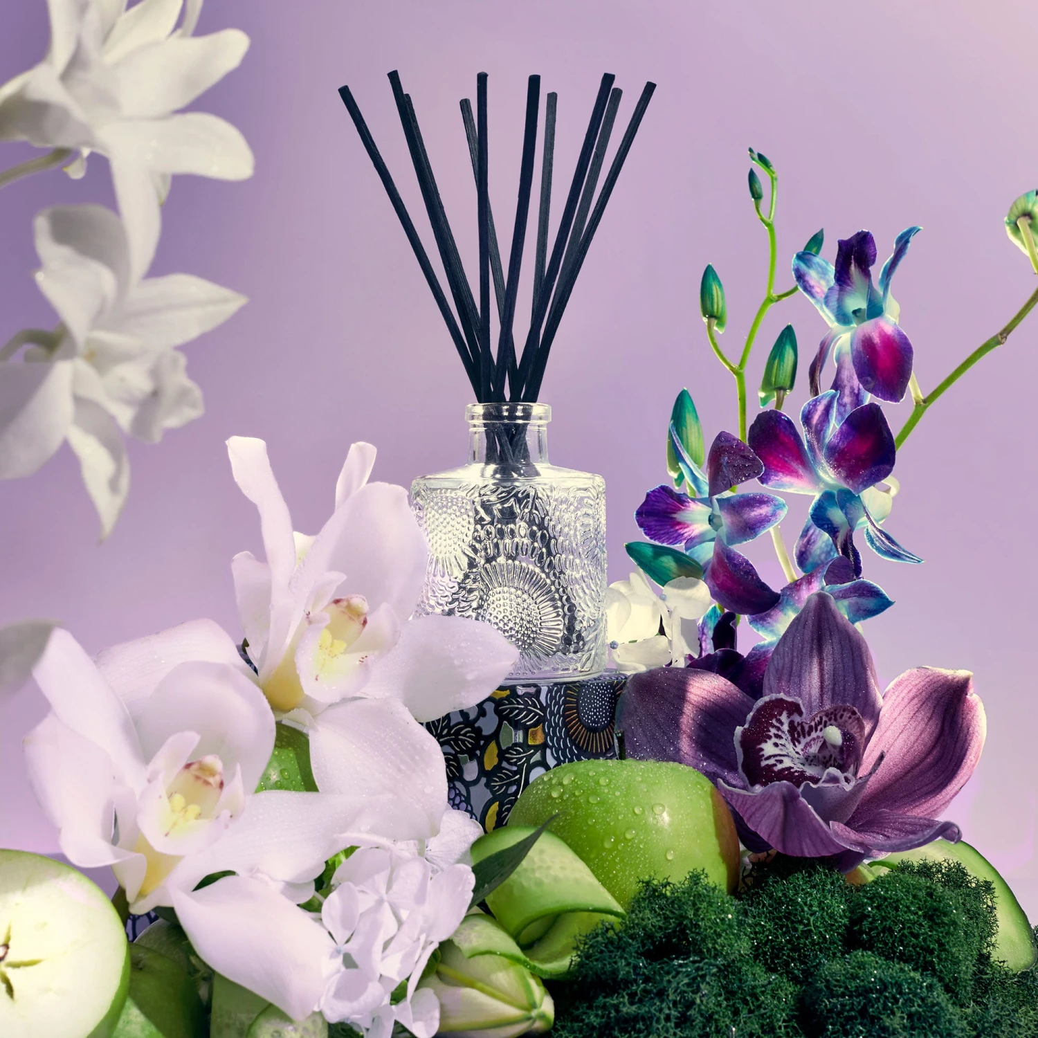 Voluspa’s fragrant diffuser oil is hand-poured into an embossed glass vessel for a subtle pop of elegant décor. Create your home’s signature, always-on fragrance in spaces requiring minimal effort, and enjoy for 4-6 months. Includes rattan reeds for powerful fragrance without overwhelming.