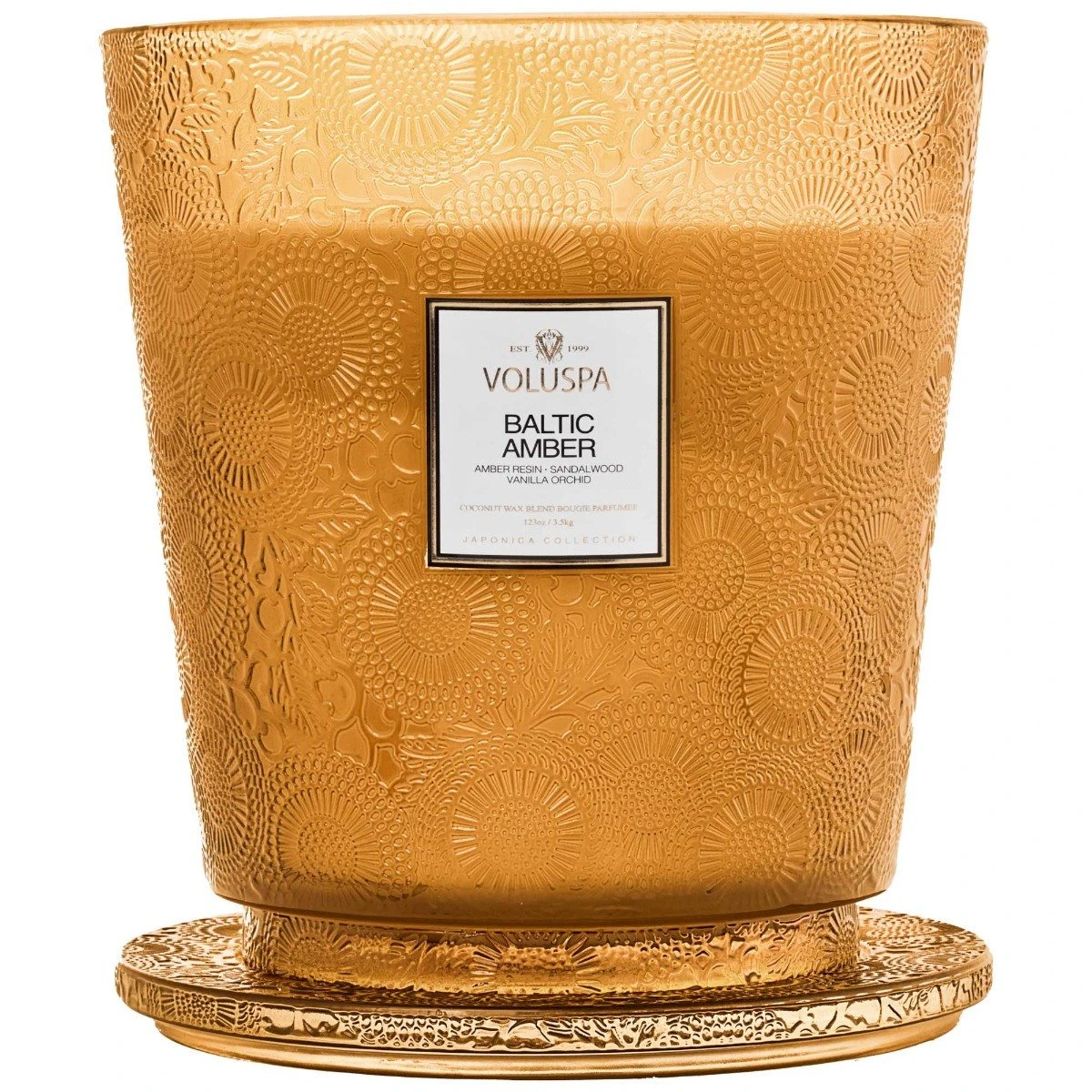 Voluspa Baltic Amber 5 Wick Hearth Candle is warming up the ambiance with a sensual soirée of honeyed Amber Resin, velvety Woods and the rich incense of smoldering Vanilla Orchid. Bask in the swoon-worthy golden glow that radiates lingering warmth. Fall under Baltic Amber’s spell and prepare to be enchanted.