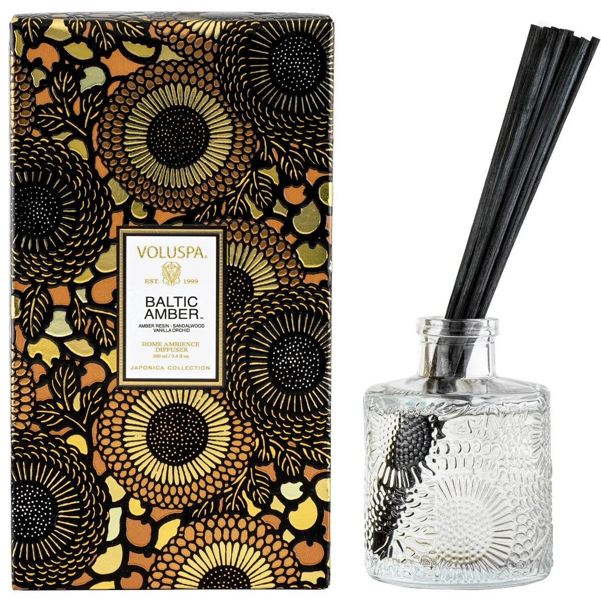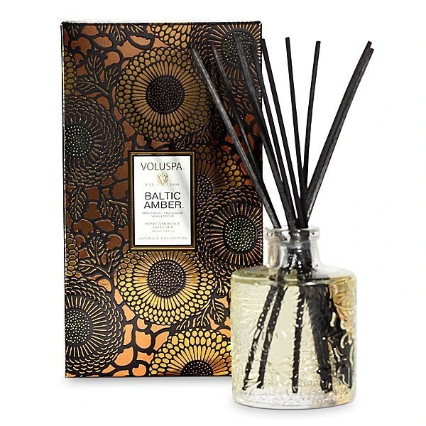 Voluspa Baltic Amber Diffuser is warming up the ambiance with a sensual soirée of honeyed Amber Resin, velvety Woods and the rich incense of smoldering Vanilla Orchid. Bask in the swoon-worthy golden glow that radiates lingering warmth. Fall under Baltic Amber’s spell and prepare to be enchanted.