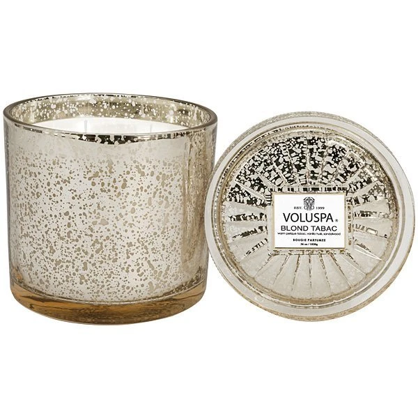 Voluspa Blond Tabac Grande 3 Wick Candle: Enter the drawing room of contentment with a scent of subtle elegance, reminiscent of tweed smoking jackets and smooth Perique pipe Tobacco. Vanilla Husk curls through Sandalwood panelled club rooms, mellowed by years of pleasure. This isn’t a pipe dream, it’s an invitation to breathe deeply and join the club of this richly storied scent.