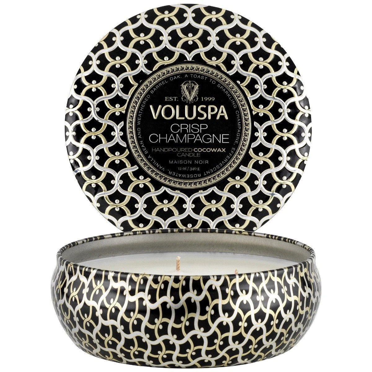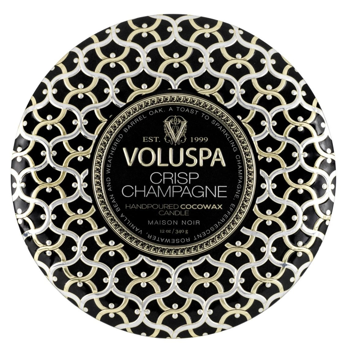 Voluspa Crisp Champagne 3 Wick Tin Candle bottled that first sip feeling – drink in a brut tickle of chilled bubbles and toast to the aroma of vanilla, apples and peaches, all from a cool wooden cask. Perfectly capturing the moment before a bottle of champagne is uncorked, Crisp Champagne makes every day an occasion to toast.