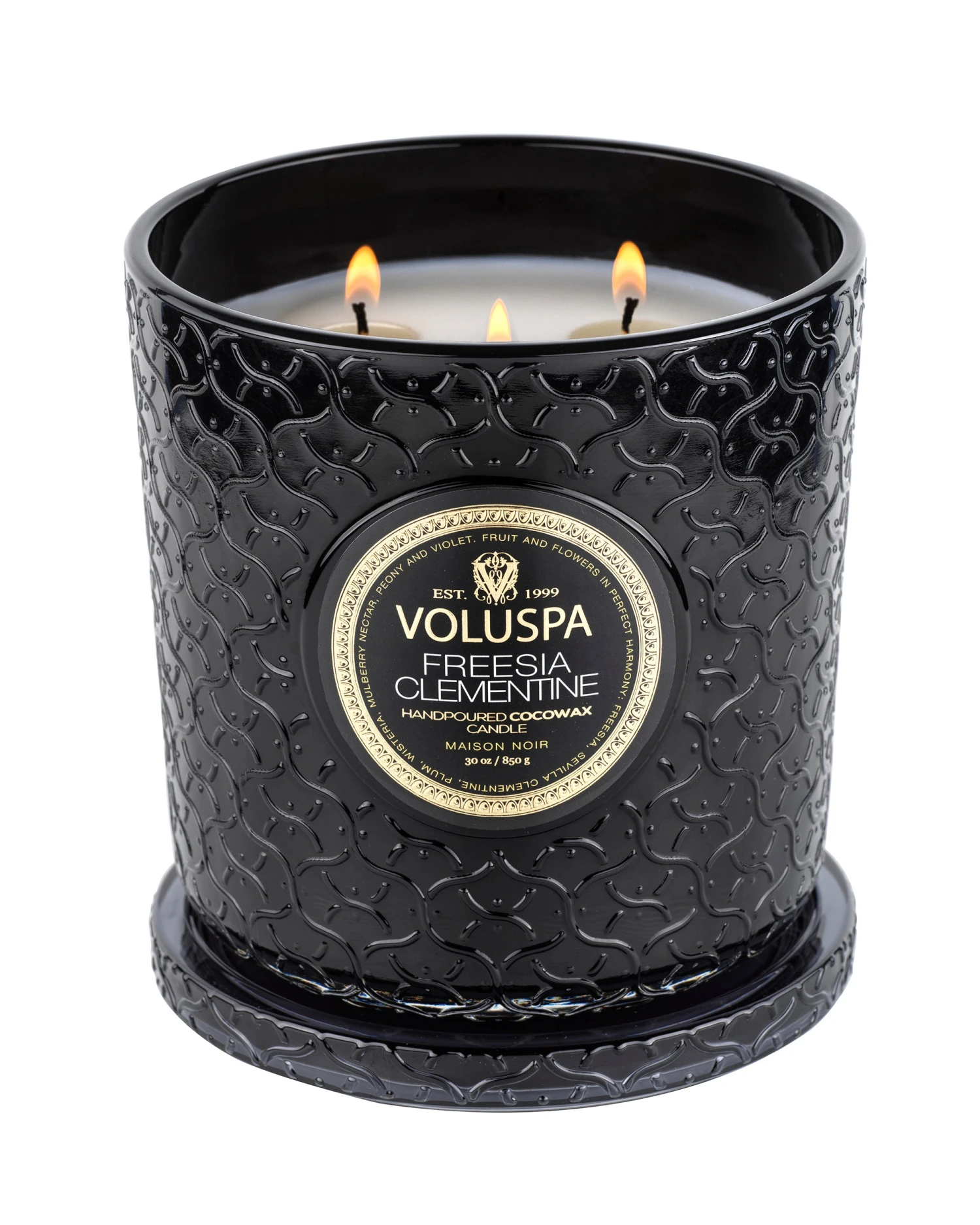 Voluspa’s unique coconut wax blend is hand-poured into a 30 oz. embossed glass vessel and topped with a matching lid that keeps the candle dust-free when not in use. Our three wicks allow you to enjoy fragrance throw for 80 hours. Our candles are hand-poured in the United States and feature our proprietary, clean-burning coconut wax blend and 100% natural wicks. Our products are free of phthalates, pesticides, parabens and sulfates and are never tested on animals. Up-cycle this best seller into a keepsake after the last burn.