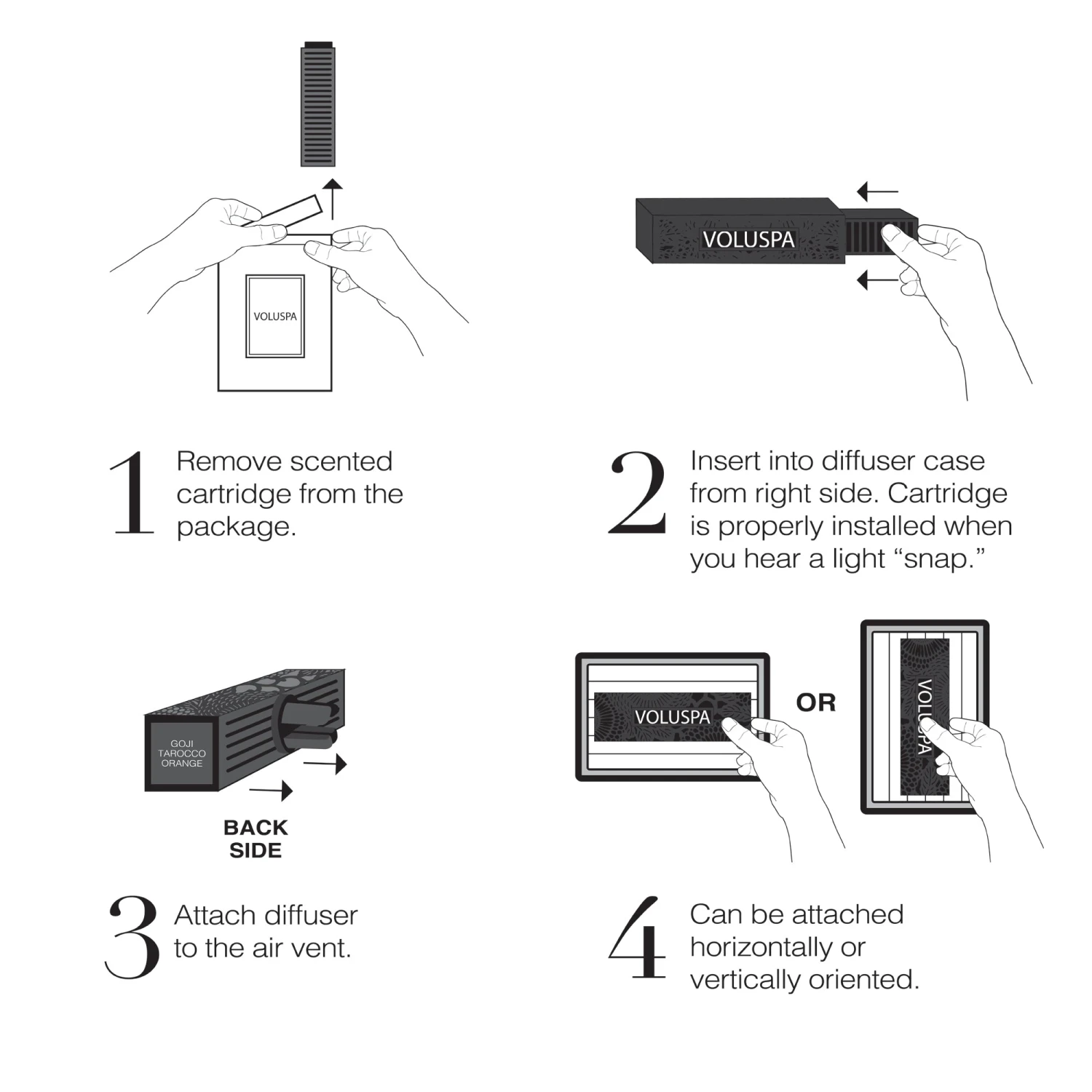 Pop the diffuser on to your car air vent and take VOLUSPA with you wherever you go!