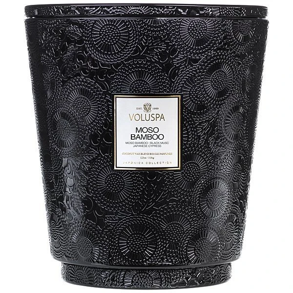 Voluspa Moso Bamboo 5 Wick Hearth Candle is like roaming a woodland trail and light a path to the forest, where the scent of the great outdoors thrives with huckleberry vines amid tall Japanese cypress boughs. Lush, green thickets flourish in fertile, dark, musky soil, while fresh bamboo saplings blend with strong, tall reeds, interwoven with greenery. Enter your secret tree house and breathe. Moso bamboo, black musc and Japanese cypress creates an alluring, sensual scent.