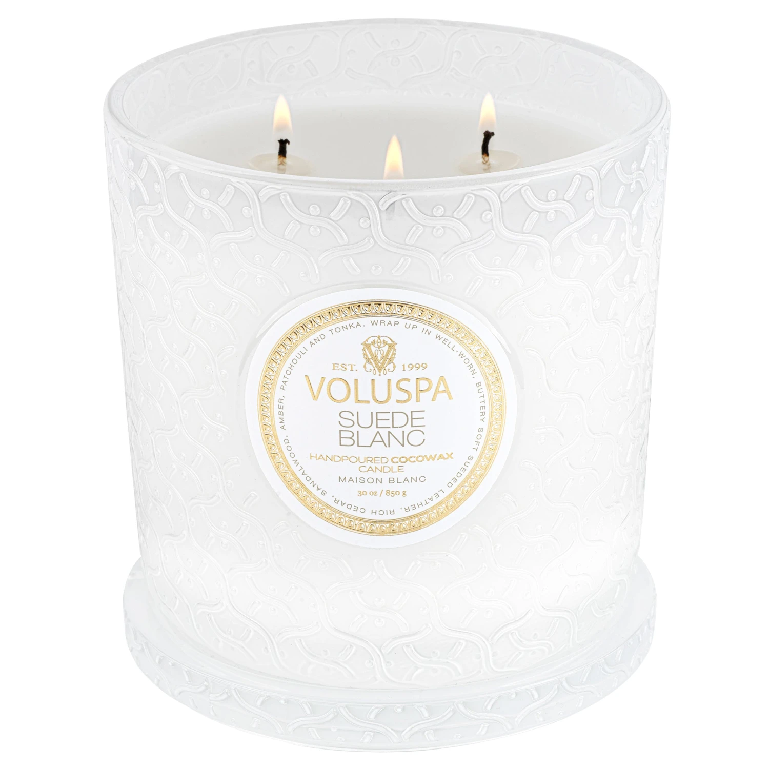 Voluspa’s unique coconut wax blend is hand-poured into a 30 oz. pearl white glass and topped with a matching lid that keeps the candle dust-free when not in use, and doubles as a base when lit. Our three wicks allow you to enjoy fragrance throw for 80 hours. Our candles are hand-poured in the United States and feature our proprietary, clean-burning coconut wax blend and 100% natural wicks. Our products are free of phthalates, pesticides, parabens, and sulfates and are never tested on animals. Up-cycle this best seller into a keepsake after the last burn.