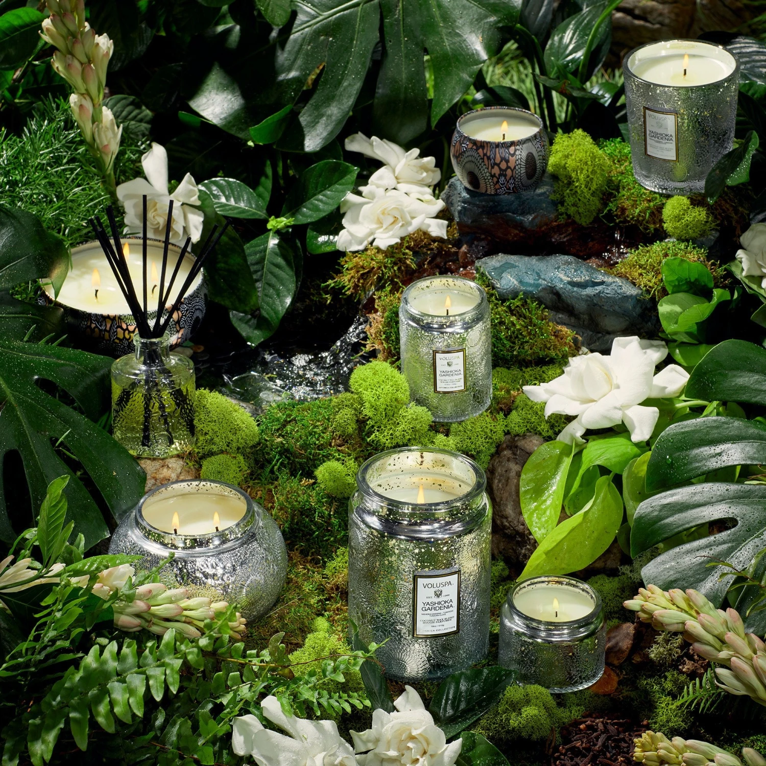 Voluspa’s unique coconut wax blend is hand-poured into a 3.2 oz. embossed glass vessel and is topped with a metal lid, adorned with Japonica detailing that keeps the candle dust-free when not in use. The single wick allows you to enjoy fragrance throw for 25 hours. Our candles are hand-poured in the United States and feature our proprietary, clean-burning coconut wax blend and 100% natural wicks. Our products are free of phthalates, pesticides, parabens and sulfates and are never tested on animals. Up-cycle this best seller into a keepsake after the last burn.